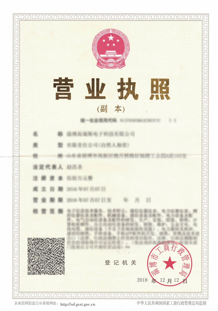 高瑞斯?fàn)I業(yè)執(zhí)照