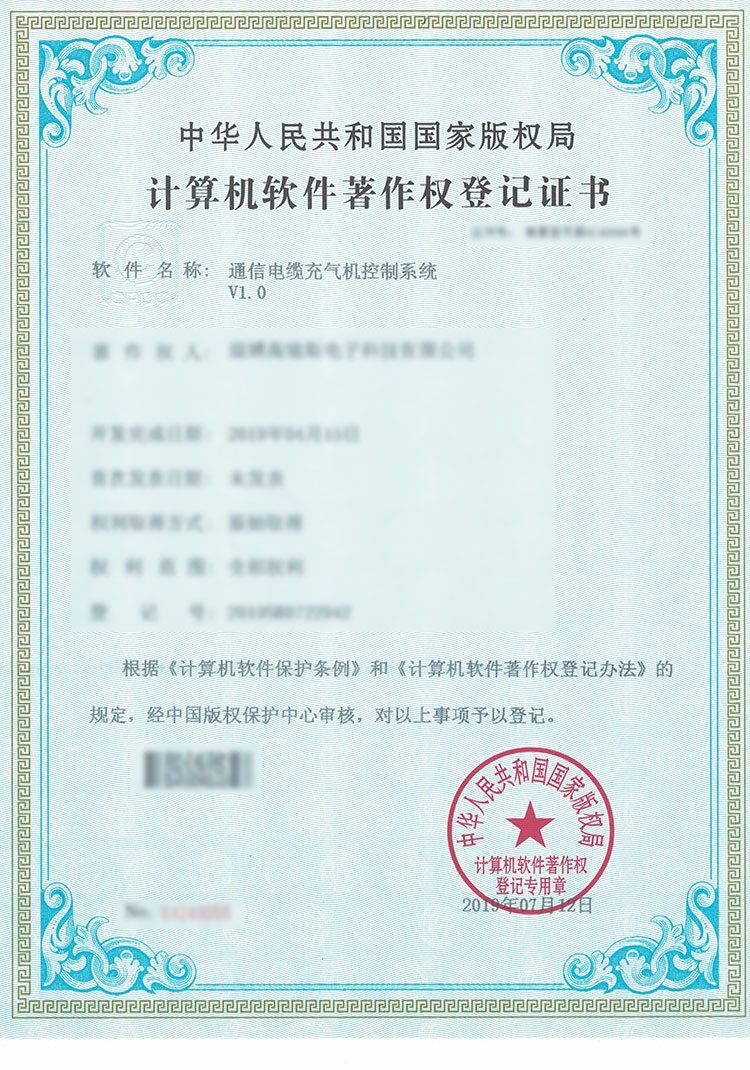 通信電纜充氣機(jī)控制系統(tǒng)著作權(quán)